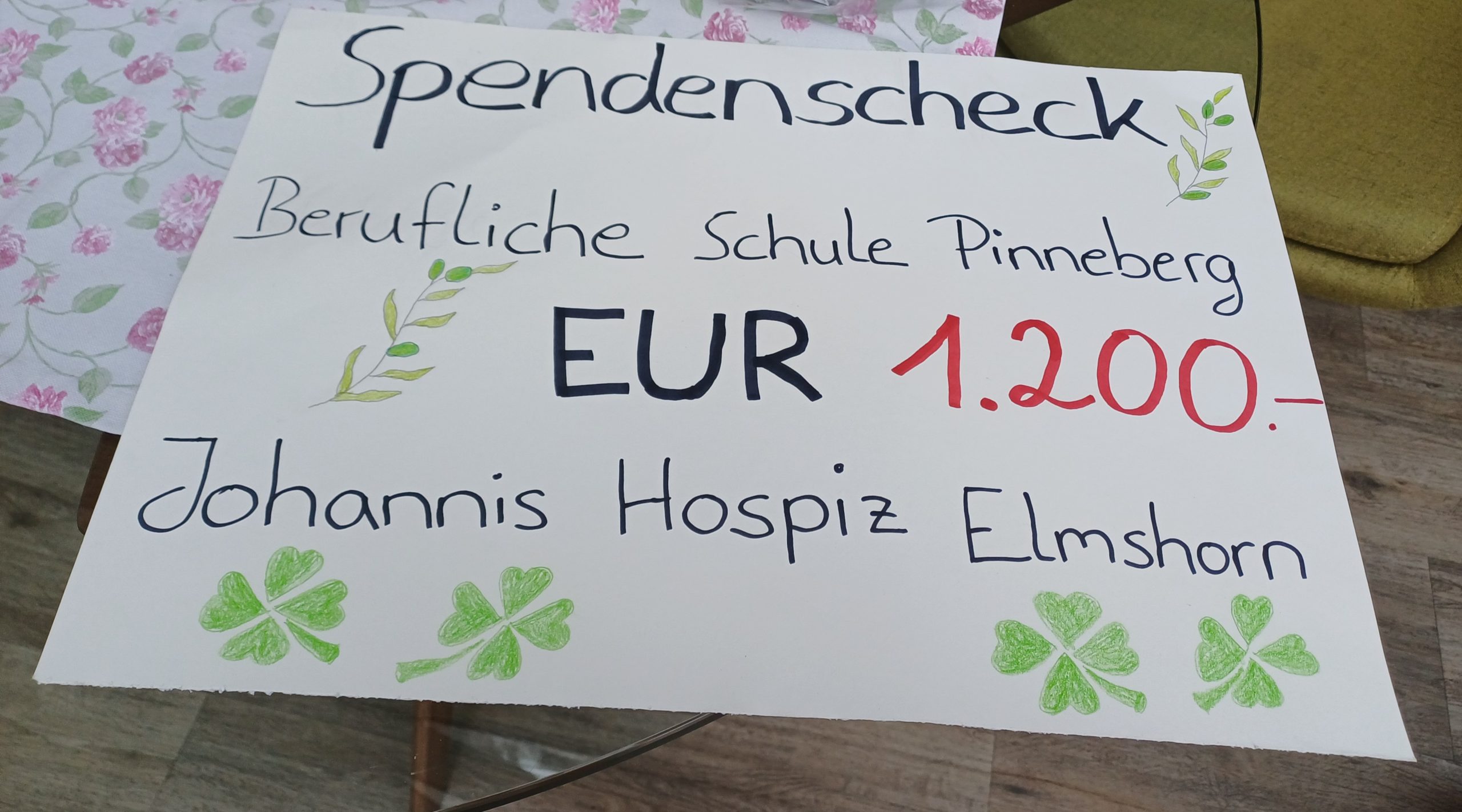 Der gesammelte Betrag, in Höhe von 1200€, wurde am 2.März 26 an das Hospiz Elmshorn gespendet. Mit der Spende wird ein Teil des diesjährigen Osterbrunches finanziert, der für schwerstkranke und sterbende Menschen sowie deren Angehörige ausgerichtet wird.
